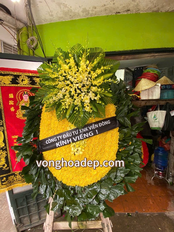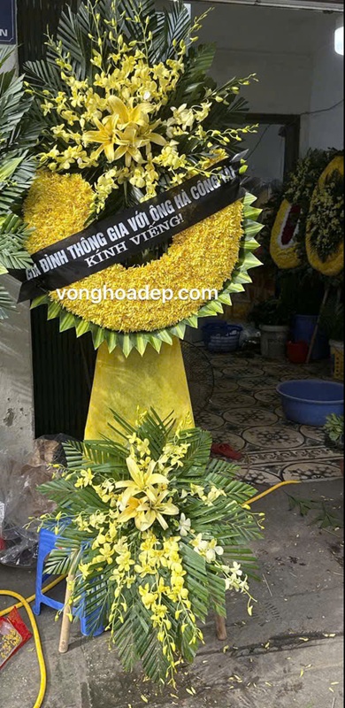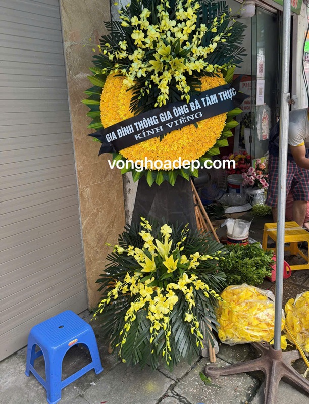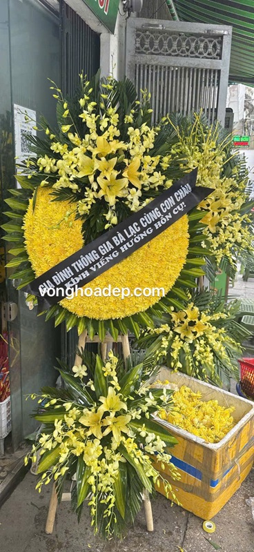 Vòng hoa viếng thông gia là biểu tượng của sự tôn kính và tình cảm gắn bó giữa hai gia đình, khi một bên thông gia qua đời. Mỗi vòng hoa được thiết kế trang nhã, tinh tế, thường sử dụng hoa lan vàng, hoa ly, hoặc cúc vàng – thể hiện lòng thành, sự tiếc thương và chia sẻ nỗi đau mất mát. Dịch vụ Vòng Hoa Đẹp cung cấp nhiều mẫu vòng hoa viếng thông gia sang trọng, phù hợp nghi lễ tang lễ truyền thống và hiện đại. Chúng tôi nhận giao hoa nhanh trong 30 phút, phục vụ tận nơi tại các nhà tang lễ, bệnh viện và khu dân cư trên toàn Hà Nội.